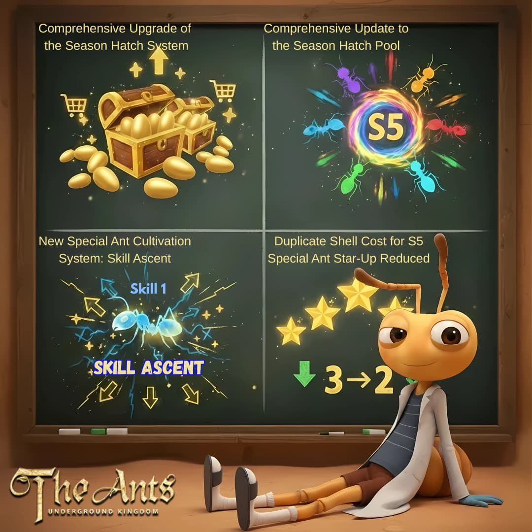 • S5 Special Ants Debut — 6 brand new Special Ants from the S5 season officially join the season hatch pool, bringing new tactical options.