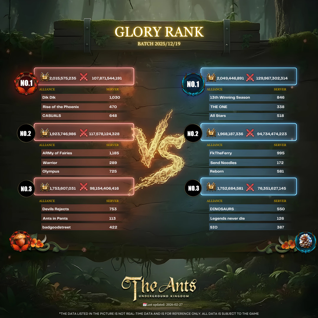 The Ranking or Matching Data of Mutated Jungle (Batch 2025-12-19) has been updated. Please click the link to obtain the detailed data (→ Mutated Jungle Ranking Information (The Ants: Underground Kingdom) - Google Sheets ).