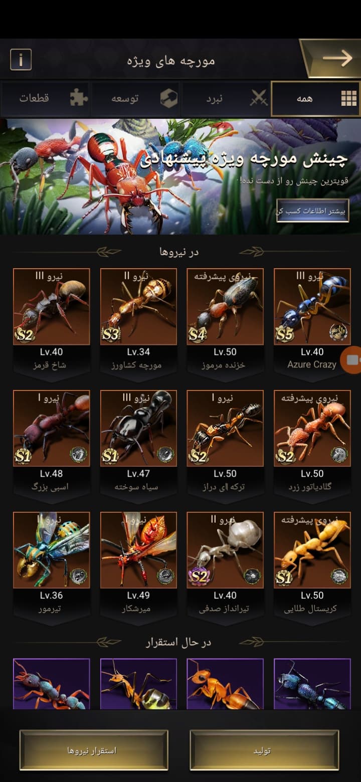 ولی امروز تمام پوسته ها جوایز باز حردم و مورچه S5 تیرانداز دریافت کردم که هیچ کارایی فعلا برام نداره