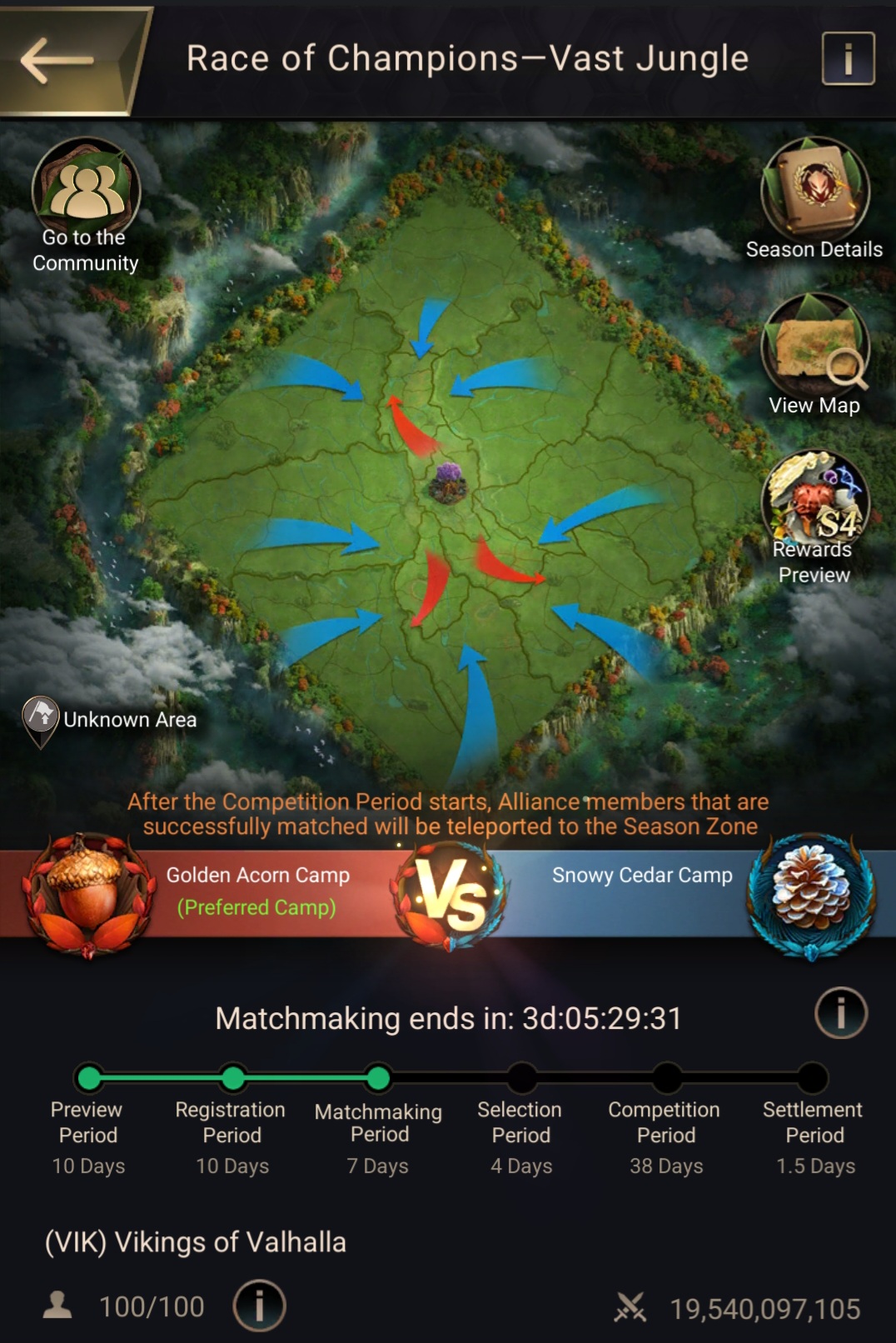 When VIK had an alliance vote, and an overwhelming number of members voted for Vast Jungle. Leaders then voted to choose our preferred team for the event. Most leaders voted to select the red camp to defend in the middle. We know that the matchmaking will place us where it wants, but defending will be our preference this time.