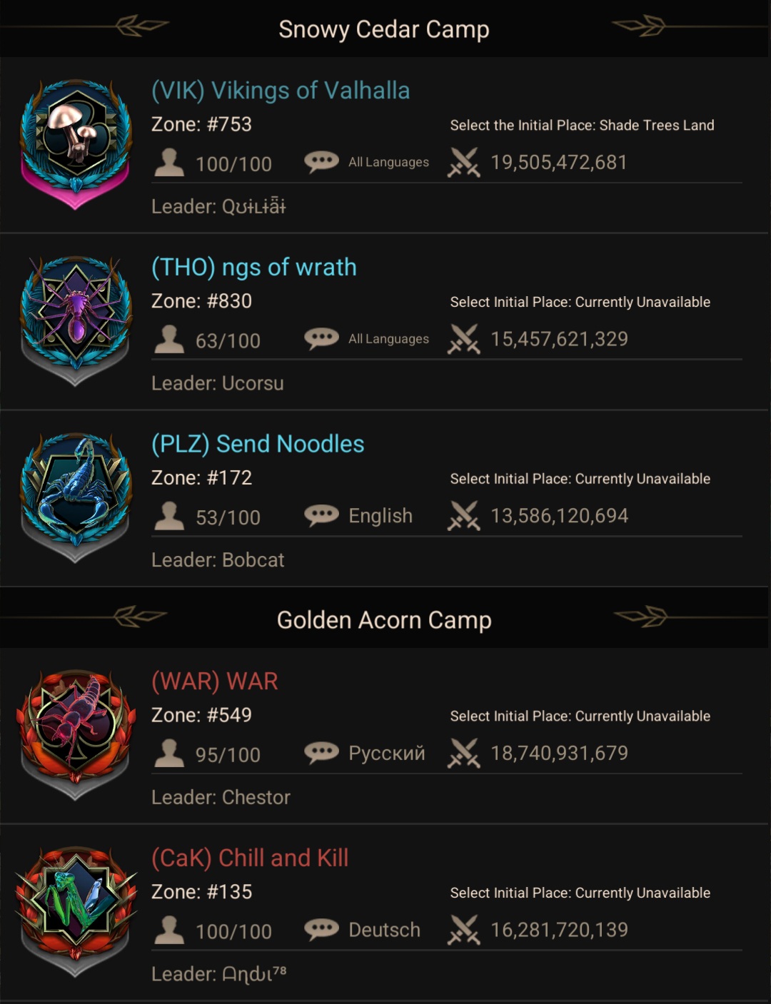 In 2 more days, the campsites will unlock in the neutral zones. We are currently discussing a plan of which zones will be the most beneficial to build into first. The plan is to split the zones to maximize teleportation abilities. One alliance will take the Wonder, while another will take the teleportation residences. This will allow our camp the best mobility when the enemy camp approaches.