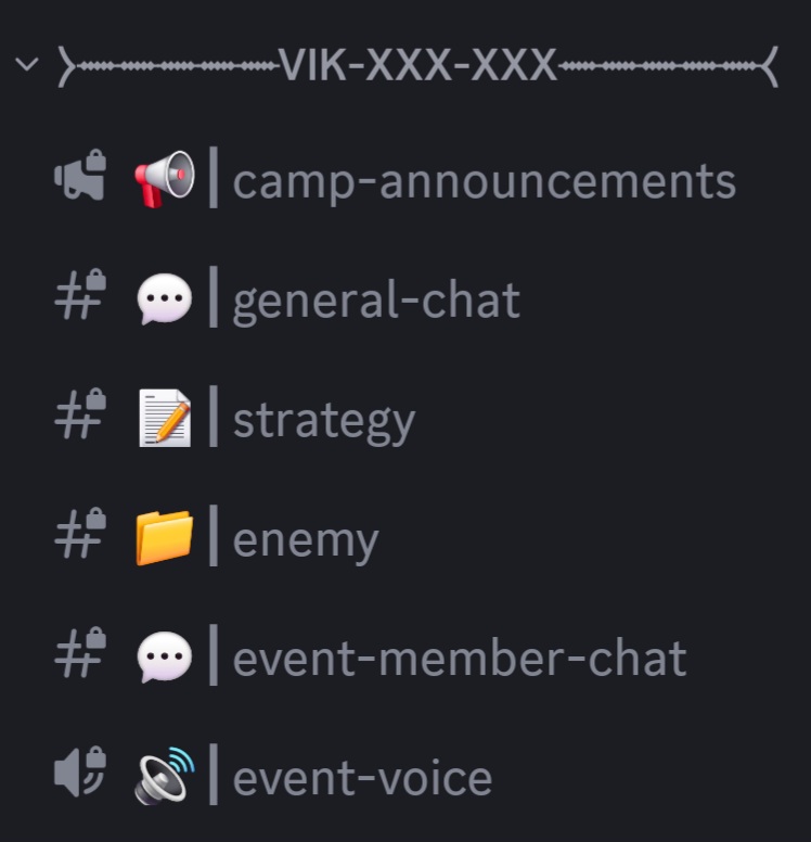 The first order of business was to get all the allies together in the VIK discord for event communication and planning. I had already set up roles and channels to use for the event. We all immediately went to planning.