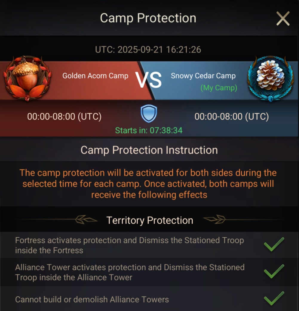 We have now entered our Vast Jungle event. Our plan to trick the enemy camp into choosing the same 0 to 8UTC protection has worked, and we now have the 16 hour fighting window that we had hoped for. The longer fighting window will be beneficial to our camp, as it allows us more time to wear down the enemies and break through into their center zones.