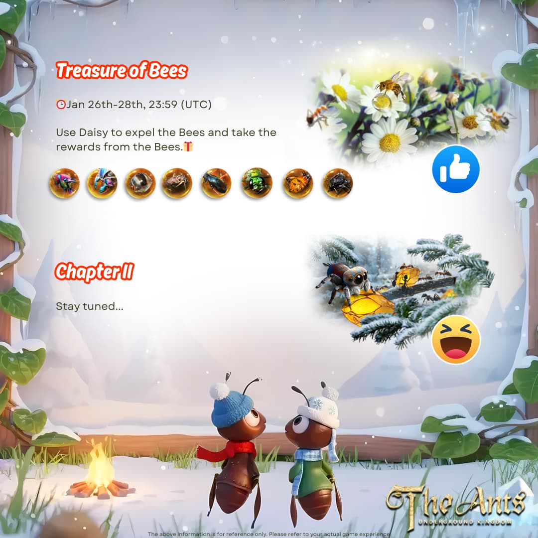 The Treasure of Bees event is here for a limited time! In addition, Chapter II of the Snowy Crisis is about to unveil its mysteries. Which event do you prefer? ![]()